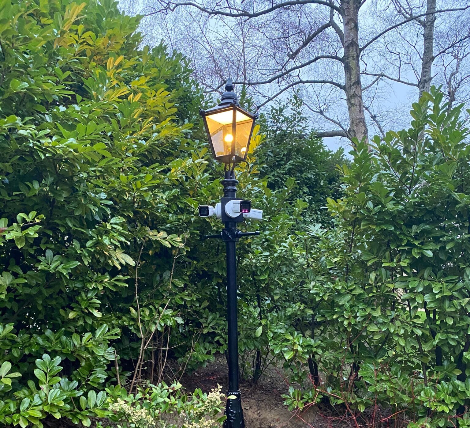 On this job we were instructed to carry out a full upgrade to the existing old analogue CCTV system to bring it up to todays standard with network 4k video images. We also installed a traditional lamp post with three cameras mounted to it to keep in with the roads characteristics without it being a stark CCTV pole. We have Hikvision cameras providing 24/7 recording with ANPR recording for everyone entering and leaving the road.